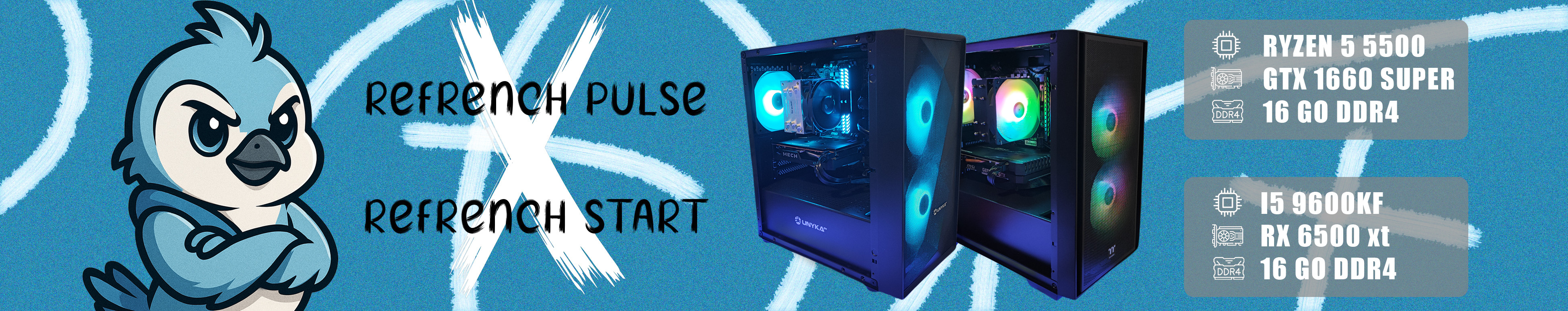 Refrenchit reconditionne des PC gamer performants, testés, nettoyés et optimisés pour offrir une expérience de jeu fluide, puissante et durable – à prix juste.